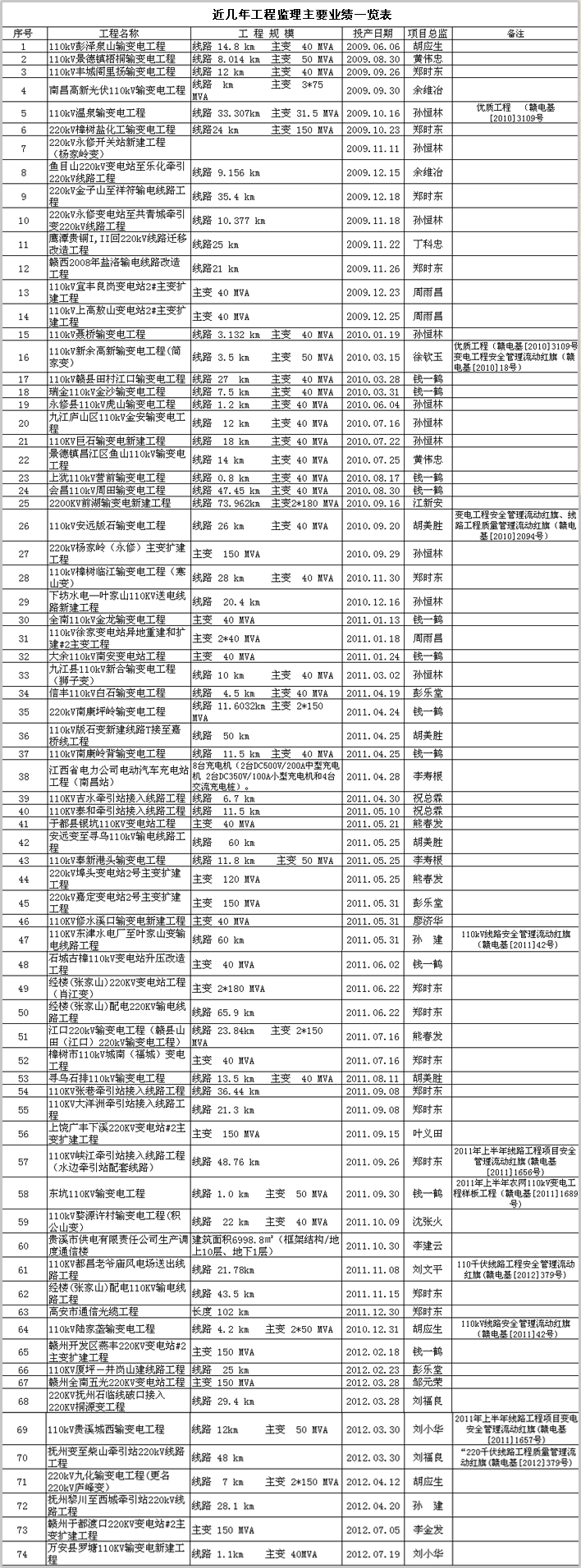 近幾年工程監(jiān)理主要業(yè)績(jī)