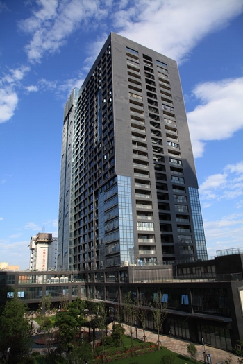 金域名都五期12#樓由主樓及地下室、沿街商業(yè)等組成,建筑總面積:59810.5平方米,其中地上51304.6平方米,地下8505.9平方米。其中商業(yè)建筑面積為8319.7平方米, 辦公建筑面積為42828.3平方米,主樓部分地面以上為28層,裙樓部分為地面以上為2層,建筑最大高度95.55m,裙樓高度12.8m。地下室2層,基礎埋深約7m,分別為人防區(qū)和非人防區(qū)。人防工程防護等級為二個甲類核六級、常六級二等人員掩蔽所,人防工程面積分別為1845平方米和1943平方米;一個物質(zhì)庫,人防工程面積分別為2725平方米;一個人防柴油移動電站。非人防區(qū)為地下車庫、庫房及設備用房。整個場區(qū)建筑群布置合理,高層建筑物為南北朝向,高度錯落有致;最大限度拓展景觀視野;采光、通風良好。