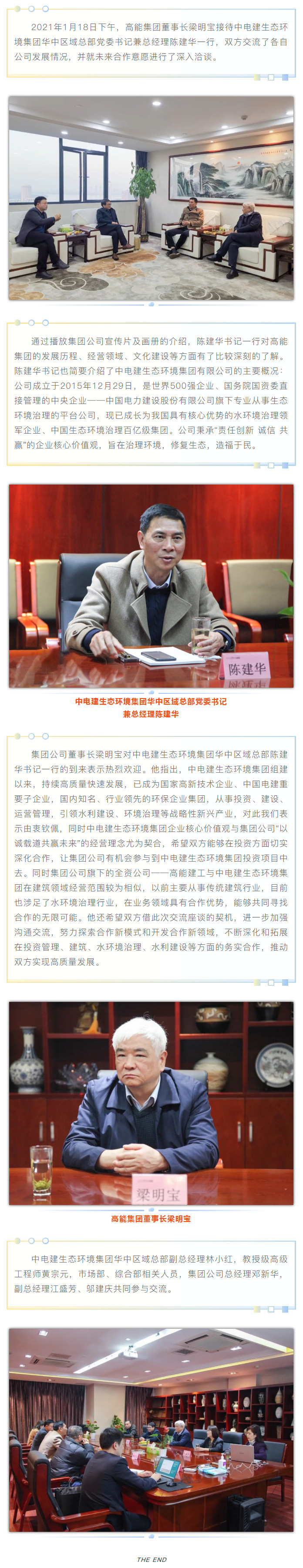 中電建生態(tài)環(huán)境集團(tuán)華中區(qū)域總部黨委書記兼總經(jīng)理陳建華一行來訪高能集團(tuán)