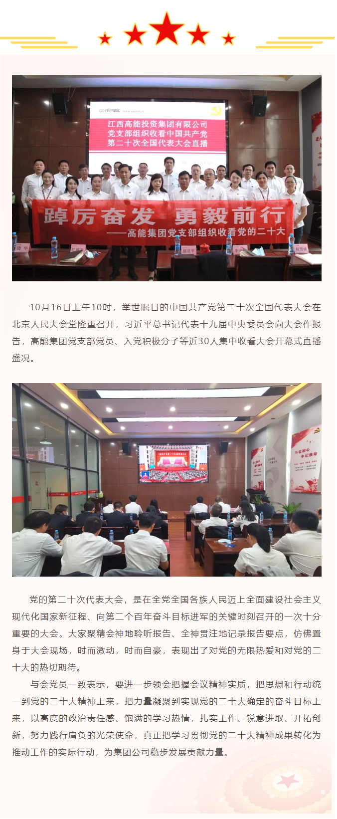 踔厲奮發(fā) 勇毅前行——高能集團(tuán)黨支部集中收看黨的二十大開幕式