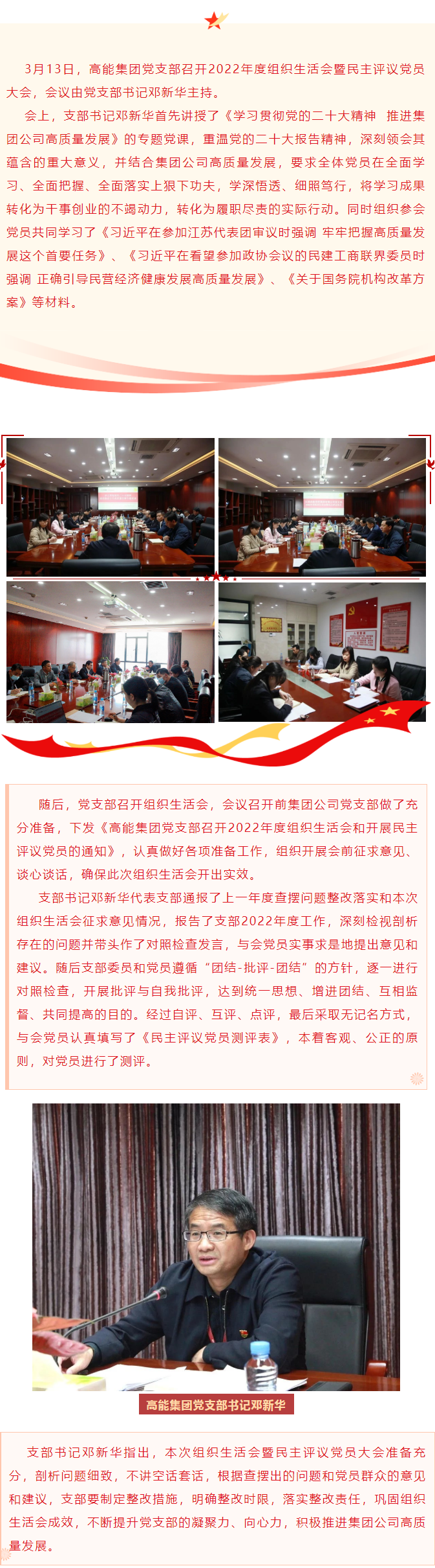 高能集團(tuán)黨支部召開2022年度組織生活會暨民主評議黨員大會