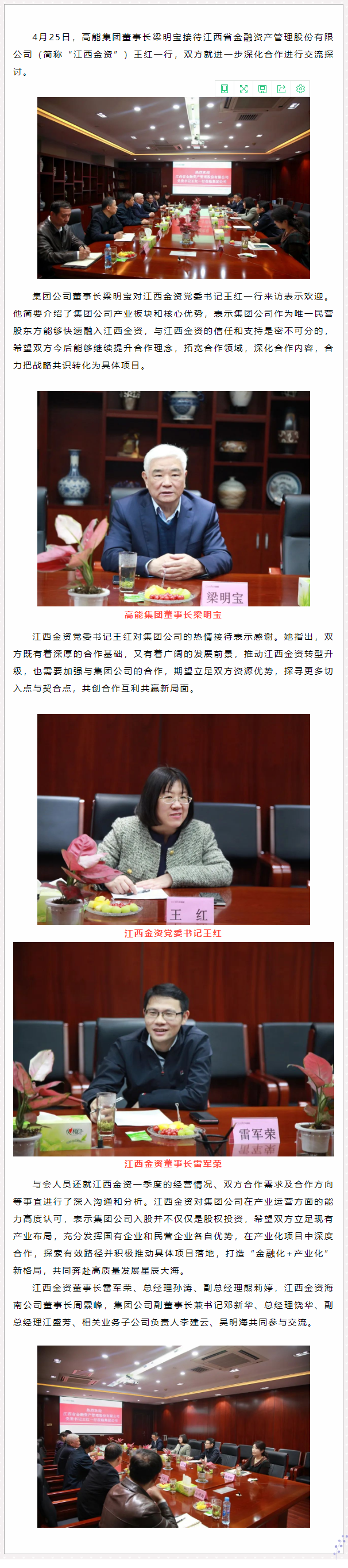 江西省金融資產(chǎn)管理股份有限公司黨委書記王紅一行來訪高能集團