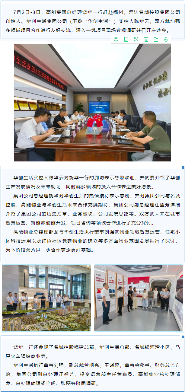 高能集團(tuán)總經(jīng)理饒華一行拜訪名城控股集團(tuán)、華創(chuàng)生活集團(tuán)公司