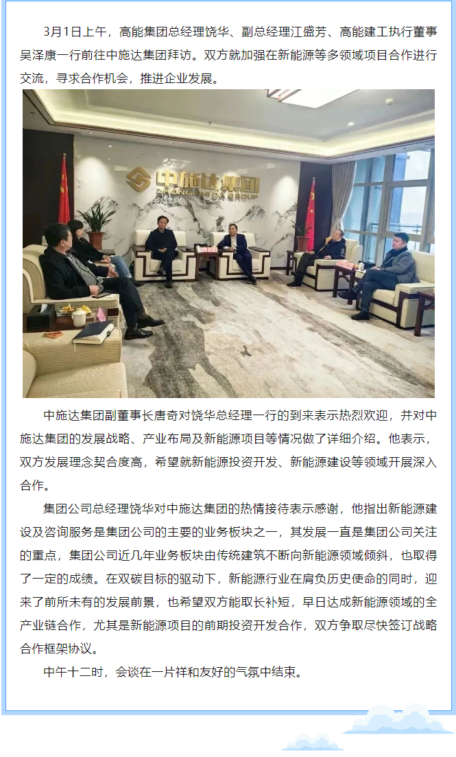 高能集團總經理饒華一行拜訪中施達集團