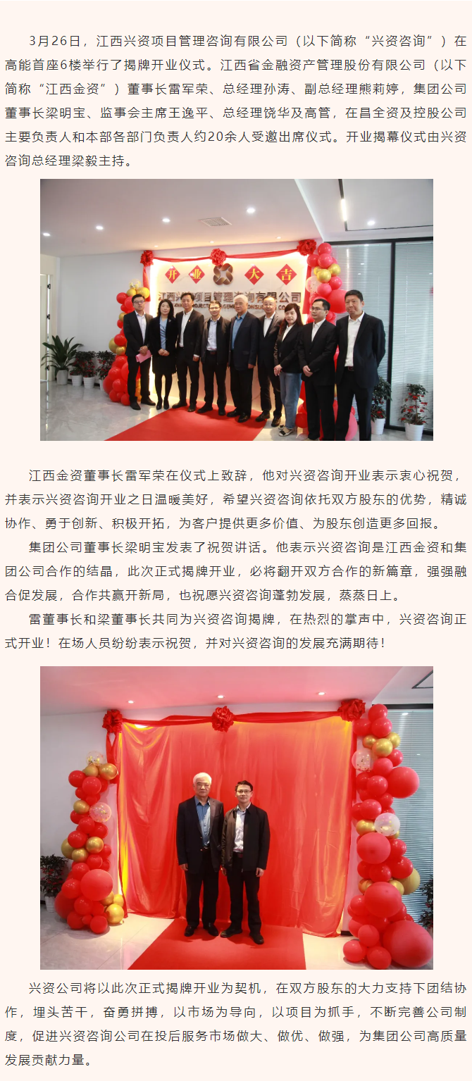 強(qiáng)強(qiáng)融合促發(fā)展,合作共贏開新局——江西興資項(xiàng)目管理咨詢有限公司正式揭牌開業(yè)