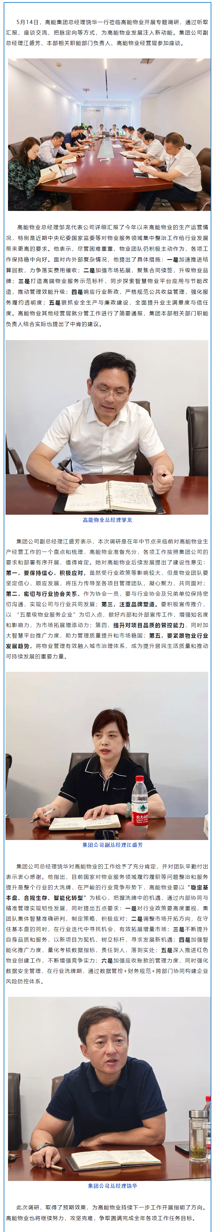 凝聚發(fā)展共識 共繪奮進藍圖——高能集團總經(jīng)理饒華一行深入高能物業(yè)調(diào)研指導