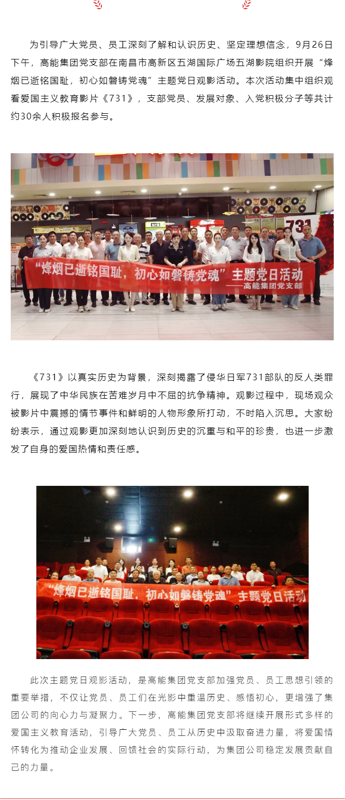 烽煙已逝銘國恥 初心如磐鑄黨魂——高能集團黨支部組織開展主題黨日觀影活動