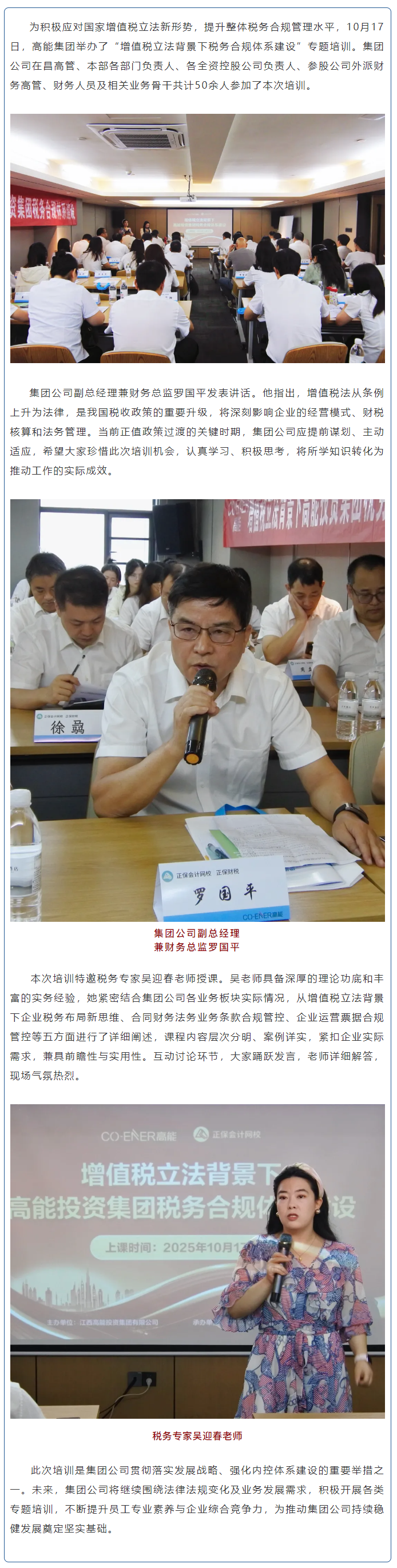 高能集團(tuán)舉辦“增值稅立法背景下稅務(wù)合規(guī)體系建設(shè)”專題培訓(xùn)