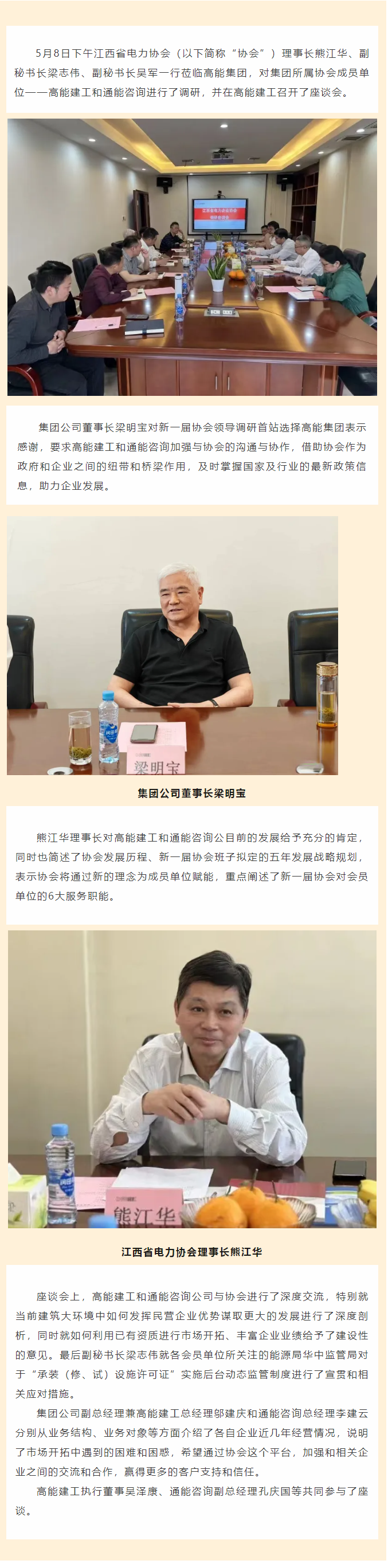 江西省電力協(xié)會(huì)熊江華理事長一行蒞臨高能建工、通能咨詢調(diào)研座談
